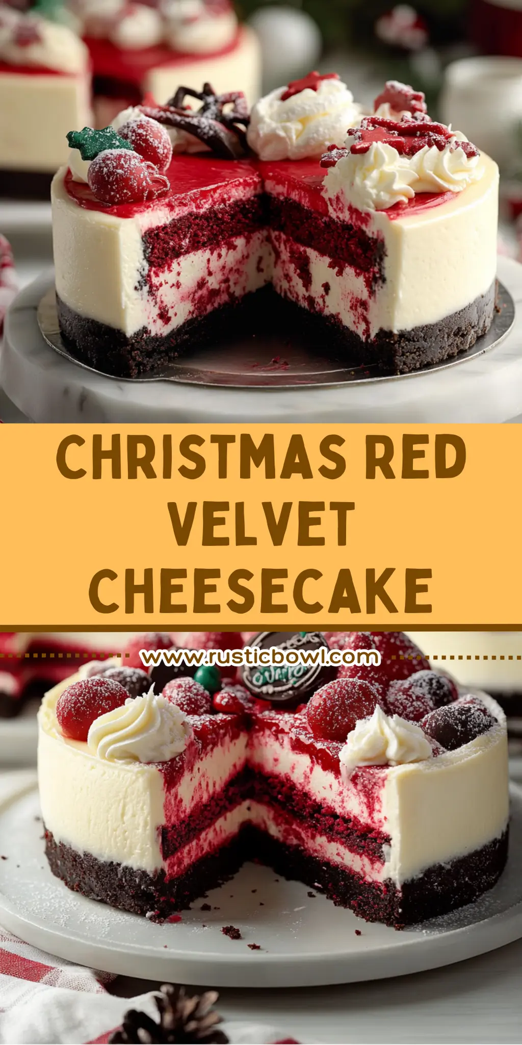 This Christmas Red Velvet Cheesecake is sure to be a showstopper at your holiday gatherings!